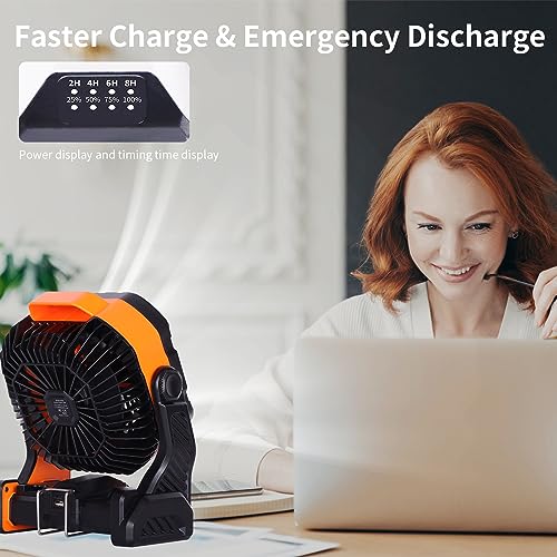 20000mAh Battery powered fan Camping Fan essentials,Portable fan Battery Operated fan, Rechargeable Battery Operated Outdoor Tent Fan with Light & Hook,Personal USB Desk Fan for Camping,Orange