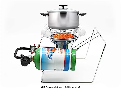 COMPACT, DURABLE & LIGHTWEIGHT: Easy to set-up with the metal stand (included) and connect to a 1LB cylinder (sold separately); 1-Year Manufacturer’s Defect Warranty