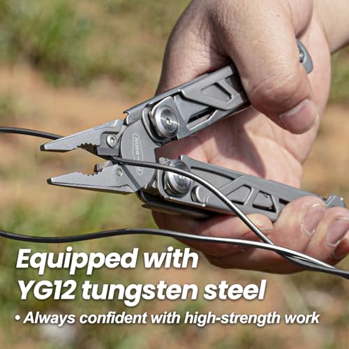 【440A STAINLESS STEELS】This survival multitool features high-alloy 440A steel giving an exceptional blend of hardness and durability to the edge, allowing for a precise and sharp edge. The edc multitool material has a hardness of 54 +/- 2 on the Rockwell Hardness Rating and is also excellent rust-resistant. And the wire cutter is made of Tungsten YG12, so it can cut through mild steel hardware surprisingly well.