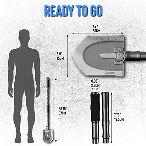 SURVIVAL GEAR VERSATILITY UNLEASHED – This isn’t just a shovel; it’s a multifunctional survival kit. Equipped with a saw, axe, knife, and more, it consolidates your outdoor toolkit, making it a versatile choice for every survival situation.