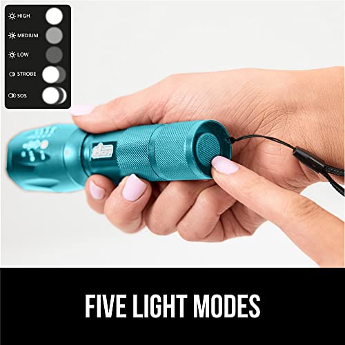 Gorilla Grip Powerful LED 750 FT Water Resistant 5 Adjustable Mode Tactical Flashlight, High Lumens Ultra Bright Battery Life Zoom Flashlights, Small Camping Car Mini Flash Light Accessories Turquoise