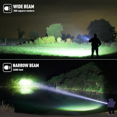 【Telescopic Function】The multifunctional LED flashlight has a telescopic function, which can extend the head of the flashlight to obtain a long-distance spotlɪght (3280 feet), or a large-area floodlɪght.
