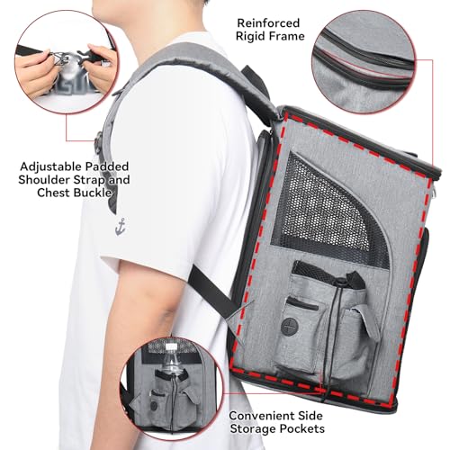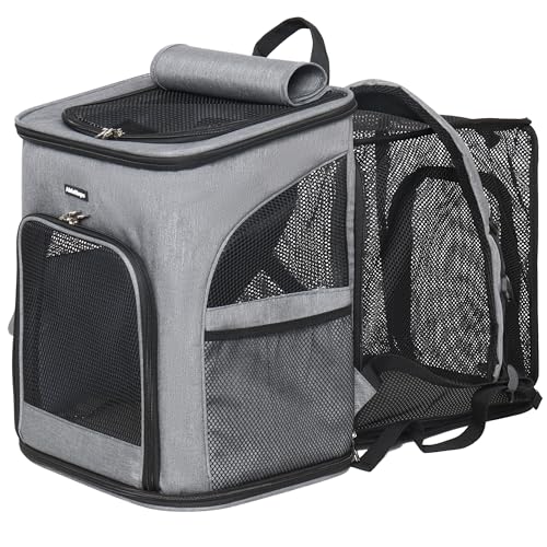 Cat Backpacks for Carrying Cats Pet Backpack Carrier for Small Dogs and Cats, Fully Ventilated Mesh Dog Backpack, Portable Cat Carrier for Travel, Hiking, Walking (Gray – Expandable)