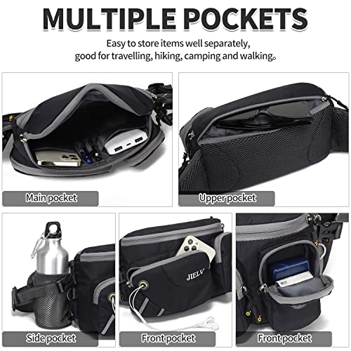 Hiking Waist Bag Fanny Pack with Water Bottle Holder for Men Women,Water Resistant Running Belt Bag for Outdoors Workout Dog Walking Hiking Cycling (Black)