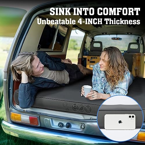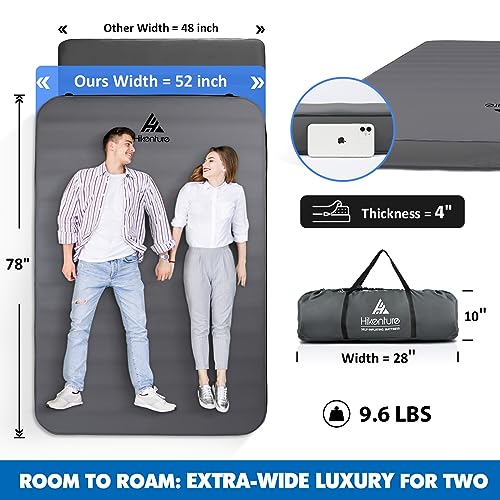 Hikenture Extra Thick Double Self Inflating Sleeping Pad, 9.5 R Camping Mattress 2 Person, Inflatable Foam Camping Pad with Pump Sack, Portable 4 in Thickness Comfort Plus Camping Mat for 4-Season