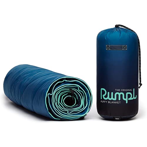 Rumpl Original Puffy Blanket – Warm Puffy Camping Blanket, 100% Recycled Polyester Insulation, Lightweight, Packable, Water-Resistant, Outdoor Puffer Blanket, 52″x75″, Ocean Fade