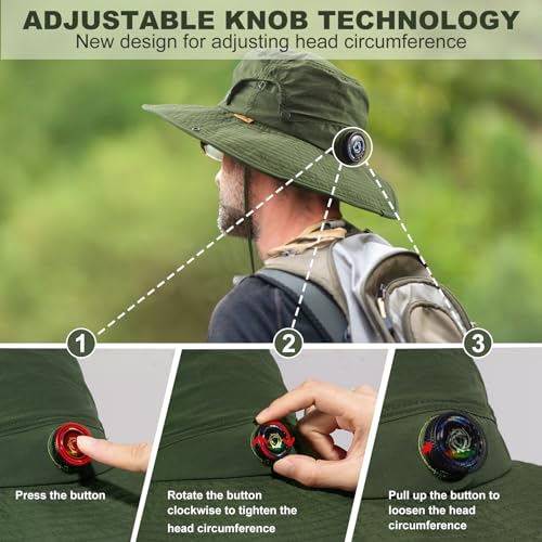Sukeen Sun Hat for Men Women Wide Brim Fishing Hat with Adjustable Knob UPF 50+ Boonie Hat for Hiking Gardening Safari