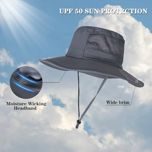 Sun Hat for Men/Women, UPF 50+ Fishing Hat,Waterproof Wide Brim Bucket Hat Foldable Boonie Hat for Hiking Garden Safari Beach