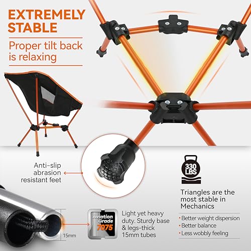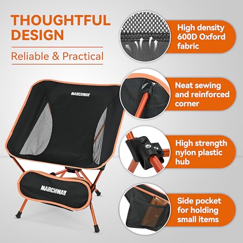 MARCHWAY Lightweight Folding Camping Chair, Stable Portable Compact for Outdoor Camp, Travel, Beach, Picnic, Festival, Hiking, Backpacking, Supports 330Lbs (Orange)