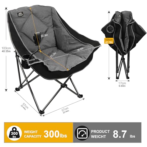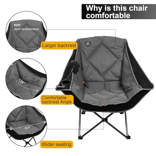 Spacious and Comfortable: The LANMOUNTAIN Oversized Folding Camping Chairs offer ample seating space and a plush, padded design that ensures a comfortable experience for adults during outdoor activities. The oversized dimensions allow users to relax and recline without feeling cramped or restricted.