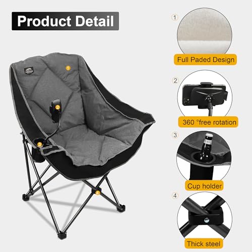 Oversized Folding Camping Chairs,Portable Heavy Duty Outdoor Padded Lawn Chair w/Phone Holder,Cup Holder Perfect for Adults Picnic,Parties,Picnics and Beach Trips,Black