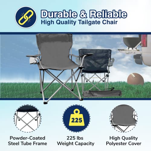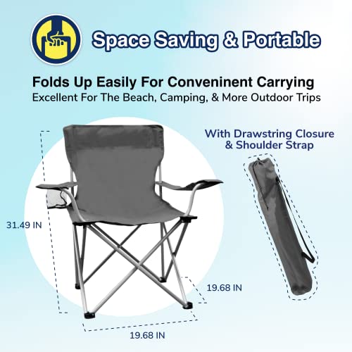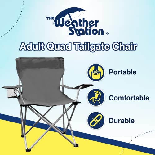 The Weather Station Camping, Lightweight and Portable Outdoor Folding Tailgate Quad Chair with Cup Holder and Armrests, Gray