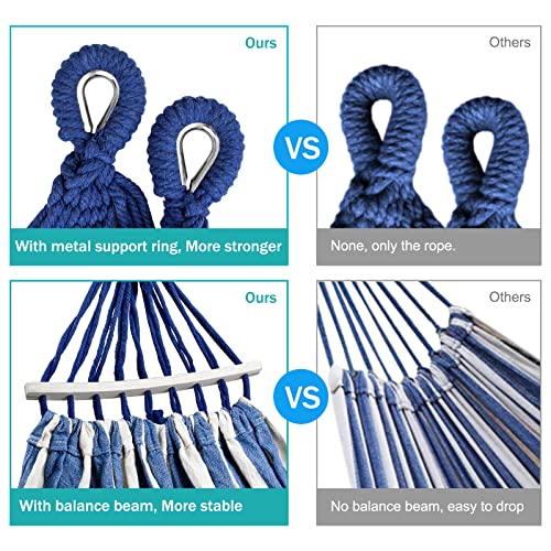 MOSFiATA Hammocks Portable Camping Hammock Upgraded 550lb Comfortable Fabric Hammock with Two Anti Roll Balance Beam and Sturdy Metal Knot Tree Straps for Camping, Patio, Backyard, Outdoor(Blue White)