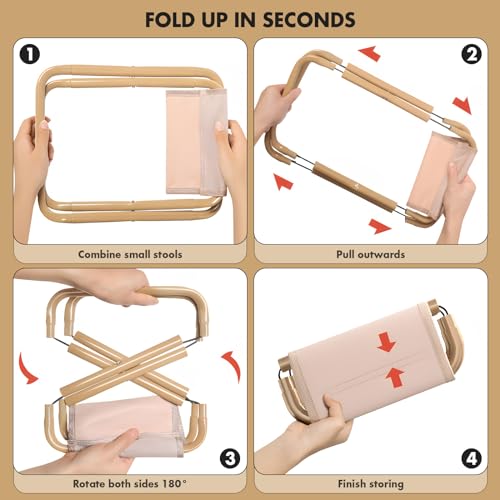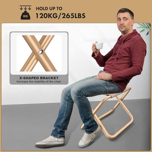 【LIGHTWEIGHT and EASY TO CARRY】camp stool folding lightweight can be quickly folded, the size becomes smaller, easy to store. Convenient to carry, easily fit into the bag provided. Meanwhile, the X-shaped bracket structure provides extra stability, making the chair safer and more stable.