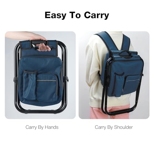 Folding Backpack Stool, Portable Cooler Chair with 15L Integrated Cooler Bag for Adults Heavy Duty 350lbs, Lightweight Foldable Foot Rest for Travel Fishing Camping Hiking