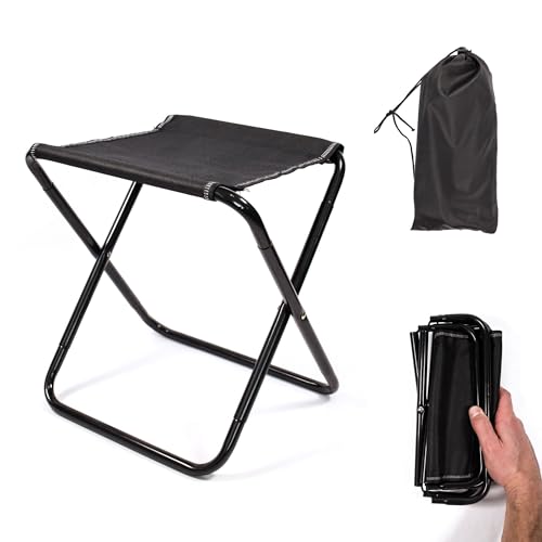 Portable Folding Stool with Storage Bag for Hiking, Fishing, Backpacking, Picnic, Camping, Hunting, Black, HYCT-050