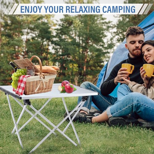 Reliable and Durable: the foldable camping table with bag is waterproof, rustproof, corrosion resistant, easy to clean, and sturdy; The non slip foot cover design can be applied on different terrains, stable and safe to use; The triangular frame and sturdy seams make the portable camp table more solid and durable
