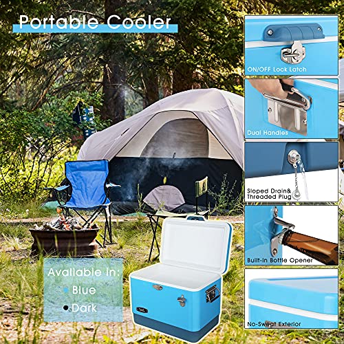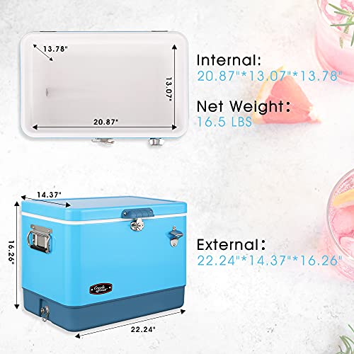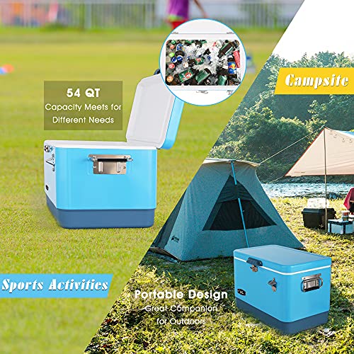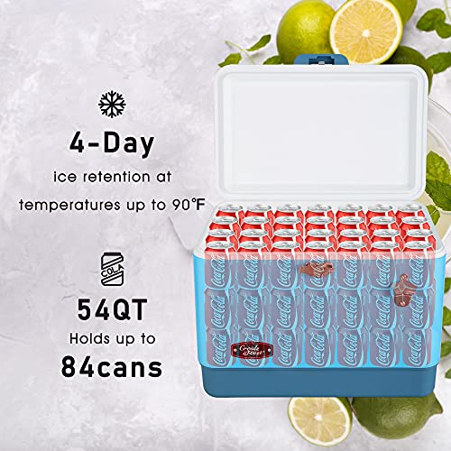 Creole Feast CL5401B 54-Quart Portable Cooler, 4 Days Ice Retention Chest Box for Camping, Sports Activities, Fishing, BBQ and Beach Blast, Blue