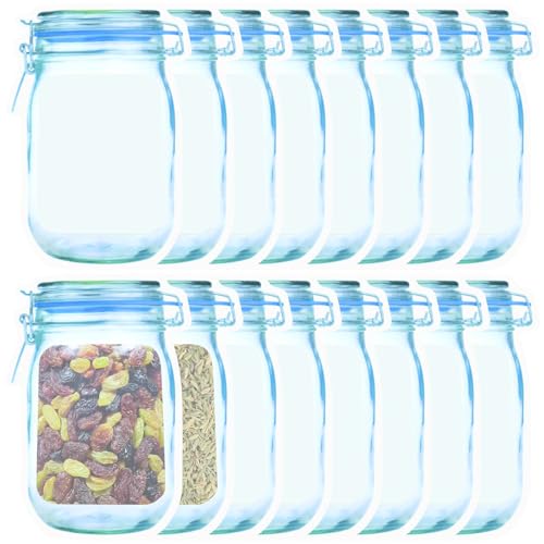 16Pcs Mason Jar Bags (32 oz) – Reusable Ziplock Seal, Leak-Proof Food Storage Bag for Kitchen, Travel, Camping & Picnics(X-large)