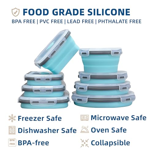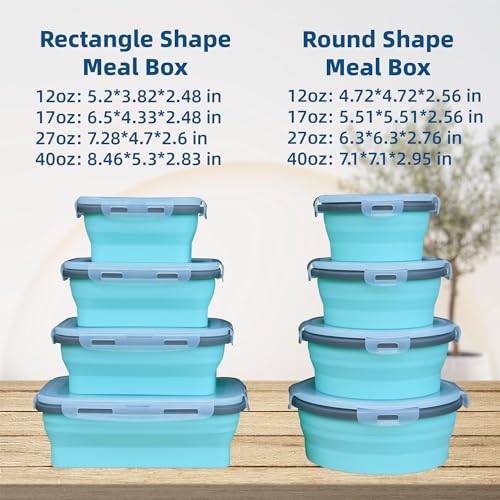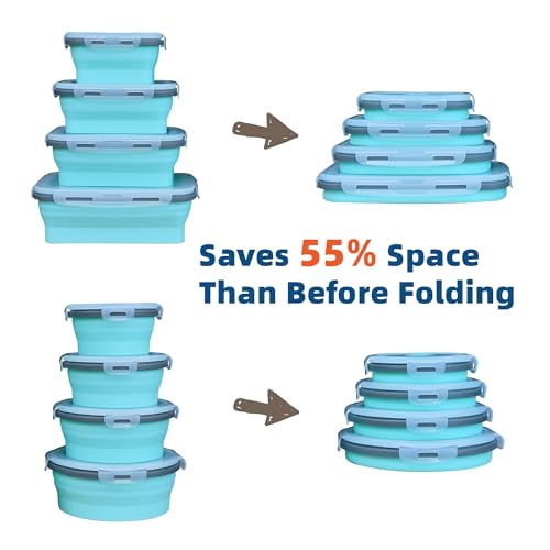 8 Pack Collapsible Silicone Food Storage Containers with Lids, Freezer & Dishwasher Safe, Foldable Lunch Box for Camper, Leftovers, Snacks, Meals