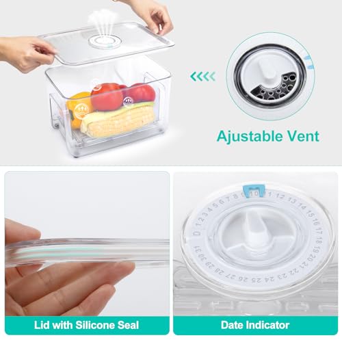 AJUSTABLE VENT FOR OPTIMAL HUMIDITY – BYUNER kitchen storage containers have adjustable vents on the lid which makes it easy to adjust the humidity of the food in the containers, create the optimal environment for your food. And a date indicator helps to date every container, it’s easy to identify when it expires.
