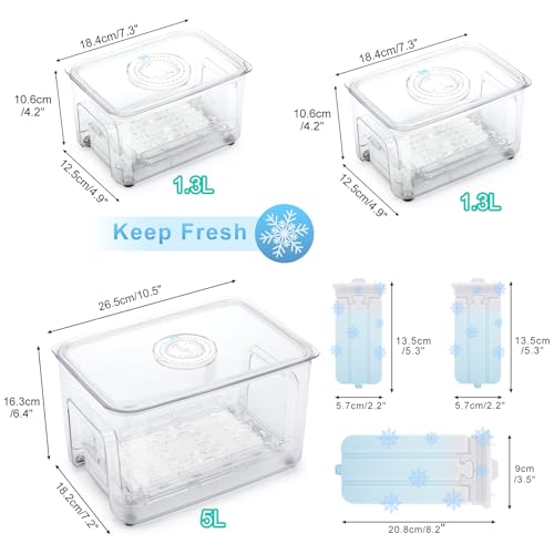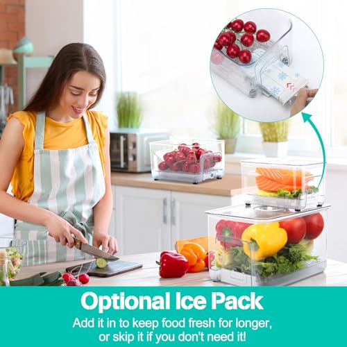 Food Storage Containers with Ice Pack for Camping Picnics: Set of 3 Fridge Organizer Bins, BPA Free Produce Saver with Removable Drain Tray, Kitchen Storage Containers with Lids Airtight