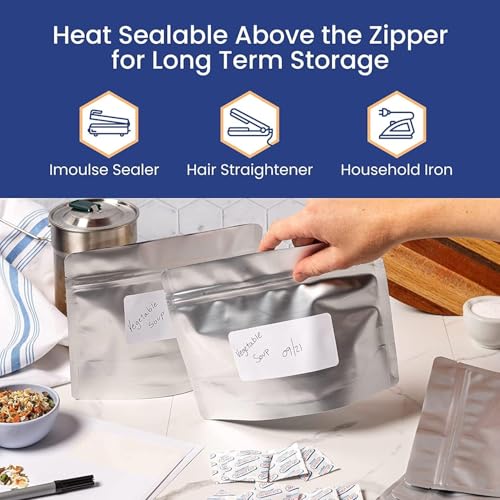 MAXIMUM PROTECTION – An added internal layer of aluminum provides superior durability and puncture resistance to keep air and moisture out and the food inside fresh. BPA-free, food-grade Mylar is heat sealable above the zipper to lock out air.