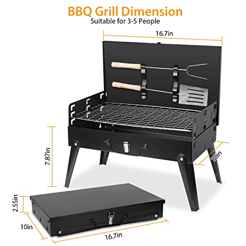 Portable Charcoal Grill, Small BBQ Grill Outdoor Folding Barbecue Grill, Foldable Camping Grill with Barbecue Accessories & Lid for Outdoor Cooking Camp Picnic Hiking Beach Party Patio Smokers