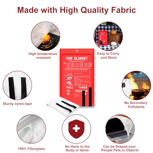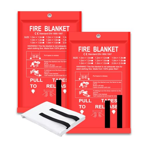Fire Blanket – 2 Pack 40″ x 40″ Fire Blanket for Home and Kitchen, Flame Suppression Fiberglass Fire Blankets for House, Camping, Grill, Car, Office, Warehouse, Emergency Fire Blanket