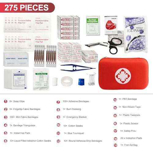 First Aid Kit for Home Hiking Camping Outdoor Sport, 275 Pieces Survival Supplies Emergency Kit, Mini Gear Bag with Basic First-aid Essentials for Emergency Cases angel wish