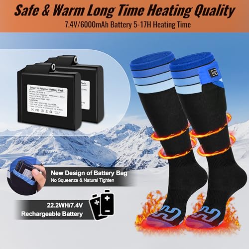 2024 Upgraded Heated Socks for Men Women with APP Remote Control & 7.4V 22.2WH,6000mAh Up to17H Rechargeable Heated Ski Sock 5 Levels Temperature for Winter Outdoor Camping Hiking Skiing