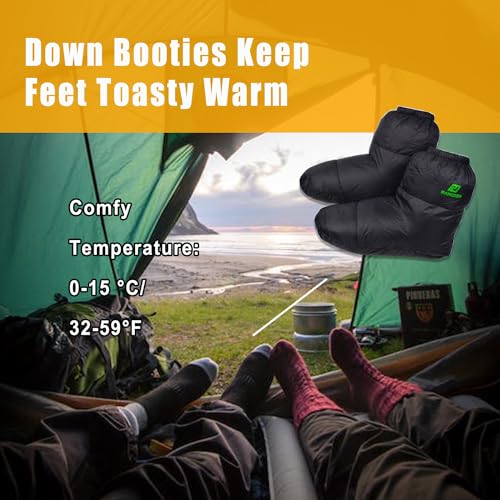 Great Gift for Campers/Backpackers. Warm up down booties keep feet toasty warm while sleeping in camping sleeping bag, camp tent, RV or around the house/bed/chair! Great for sitting/sleeping/laying down.