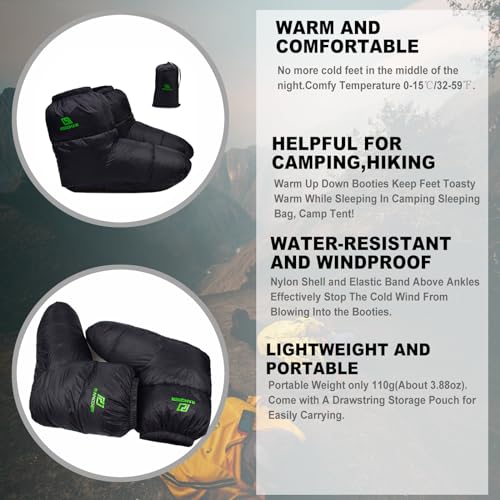 Down Booties Warm Socks Ultralight Sleeping Sock for Camping, Backpacking – Camp Sleeping Bag Tent Down Foot Warmer for Men & Women