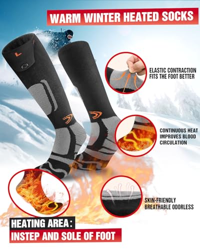 Heated Socks,Electric Heated Socks Men,4 Heat Settings Rechargeable Heating Socks with 360° Heating,Machine Washable Thermal Electric Socks Unisex Foot Warmer for Hunting Skiing Camping