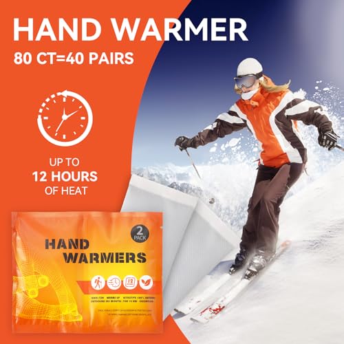 Hand Warmers, Up to 12 Hours Long Lasting Heat – Air Activated Hand Warmer Disposable, Natural Odorless Toe Warmers, 40 Pair Multipurpose Body Warmers(80 Counts)