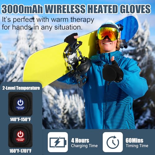 Rechargeable Wireless Heated Gloves: These versatile gloves are designed for maximum comfort. With a 2 in 1 full finger and half finger design, wireless functionality, and a built in rechargeable battery, you won’t need to fuss with cords, ensuring both safety and convenience. The gloves feature a high quality fiber heating element that covers both sides of your hands, providing rapid warmth within 5 seconds of activation, making winter chill a thing of the past.