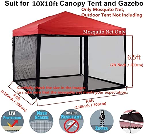 Mosquito Net for Outdoor Patio and Garden, Screen House for Camping and Deck, Gazebo Screenroom, Zippered Mesh Sidewalls for 10x 10′ Gazebo (Black)