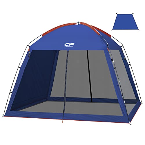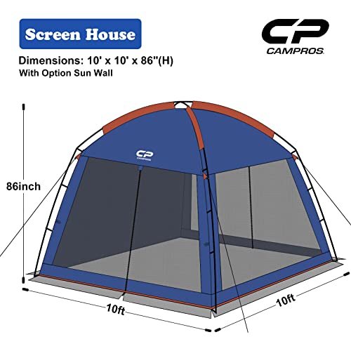 CAMPROS CP Screen House Room with 1 Pc Removal Wind/Sun Panel Canopy Tent Camping Tent Screen Shelter Gazebos for Patios Outdoor Camping Activities, 10’X10’X86in(H) – Blue